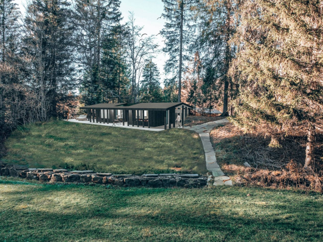 Das Projekt sieht ein hochwertiges Chalet in moderner Holzbauweise vor, perfekt eingebettet in die natürliche Umgebung. Großzügige Glasflächen sorgen für lichtdurchflutete Räume und reizvolle Ausblicke auf den angrenzenden Wald. Im Erdgeschoss befinden sich ein offener Wohnbereich mit Küche und Zugang zur Terrasse, ein Schlafzimmer sowie ein modernes Badezimmer mit Dusche. Das Untergeschoss bietet zusätzliche Flächen mit vielfältigen Nutzungsmöglichkeiten – ideal für Wellness, Hobbyräume, Gästezimmer oder individuell gestaltete Bereiche.